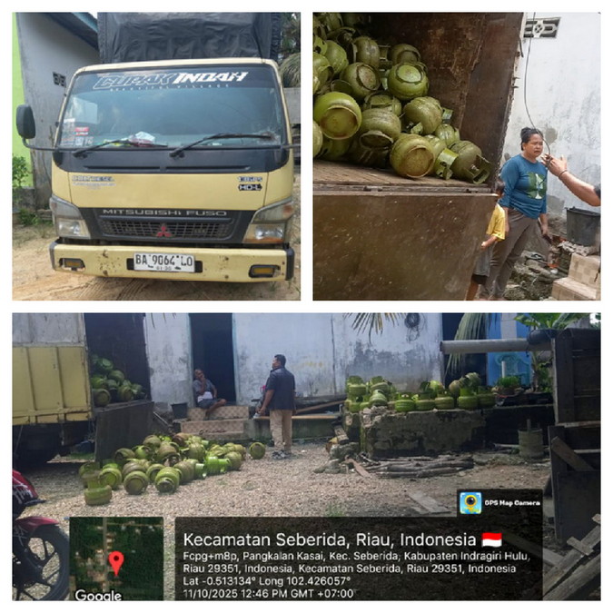 Berita Permata.Com||Seberida Inhu,   Sebanyak 1.700 buah tabung kosong Gas Elpiji 3 kg subsidi masyarakat miskin, kepergok dipasok dari Kota Padang-Sumbar ke wilayah Seberida Inhu Riau diangkut satu truk Colt Diesel Sabtu (11/10/2025).