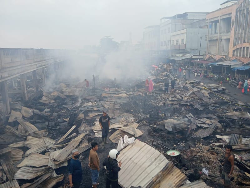 “Kami sedang di lapangan melakukan pengecekan. Saat ini baru terdata sekitar 200 kios yang terbakar, dan jumlah pastinya masih kami hitung. Kerugian diperkirakan mencapai miliaran rupiah,” ujar Nursal.
